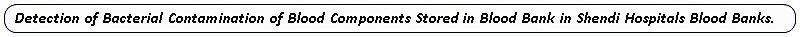 Detection of Bacterial Contamination of Blood and Blood Components Stored in Blood Bank in Shendi Hospitals Blood Banks.