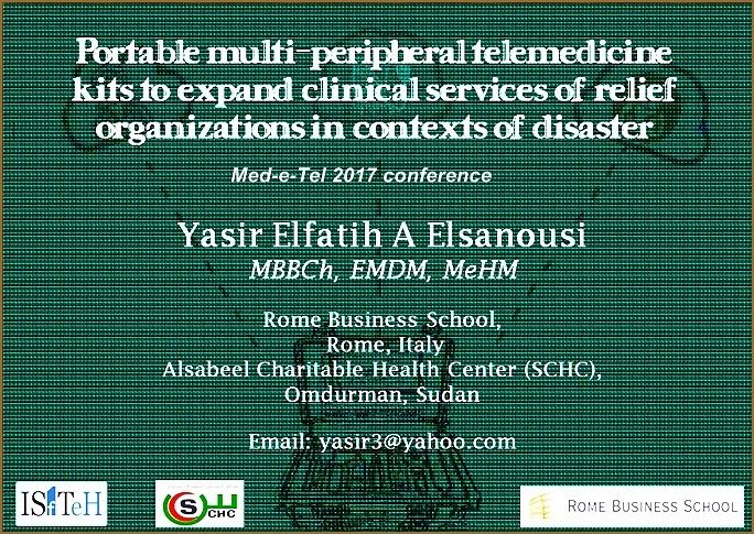Elsanousi, Yasir E. A. “Portable Multi-Peripheral Telemedicine Kits to Expand Clinical Services of Relief Organizations in Contexts of Disaster.” ISFTEH, 2017.